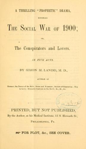 This is the play adaptation of Simon Landis’ The Social War of 1900, or The Conspirators and Lovers!, itself a behemoth-sized catastrophe that is often described by critics as one of the worst science fiction novels ever written. The dramatic version does not fare much better, trading in the elephantine girth and overwrought prose of the original with howlingly purple dialogue, erratic plotting, baffling character motivations, equally repellent ideas, and a number of scenes that would be virtually unstageable under even the best of circumstances. In fact, there is little evidence to suggest that Landis ever successfully commissioned a theatrical exhibition of this play. It remained a vanity project, a virulent screed against an ever-changing world that alienated its author, and a radioactively strange work of outsider art that still manages to captivate us today.