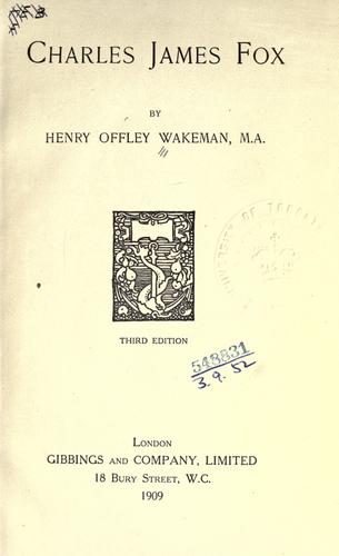Charles James Fox (1749-1806) was a prominent British Whig member of Parliament and the arch-rival of William Pitt the Younger. A staunch opponent of George III, he supported the American colonists throughout the War of Independence. He was a leading parliamentary advocate of religious tolerance, individual liberty, and the anti-slavery cause. A notorious gambler and womanizer, Fox fell in love with and married Elizabeth Armistead, the former mistress of the Prince of Wales, and found happiness and tranquility in their home, St. Anne's Hill. He was most famous for his oratory, of which Wakeman writes that in "the whole range of Fox's speeches there is not to be found a mean thought or an affectation...The very openness and complete absence of reserve, with which he poured out his whole heart to his audience took them by storm." (Pamela Nagami, M.D.)