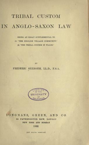 Tribal Custom in Anglo-Saxon Law