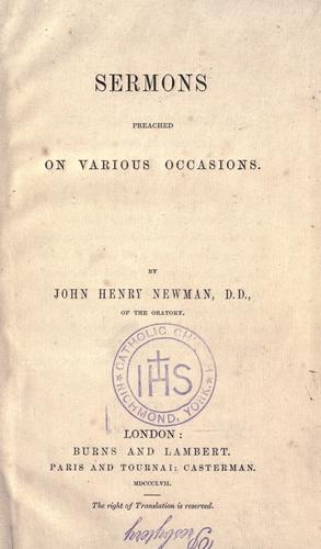 Sermons Preached on Various Occasions