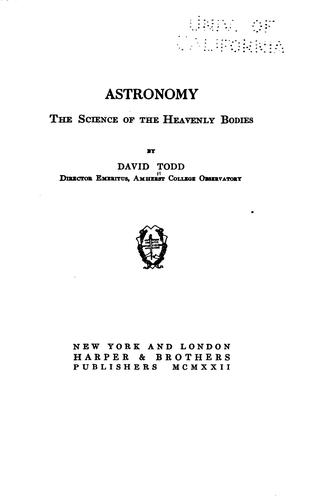 The progress of astronomy from age to age has been far from uniform—rather by leaps and bounds: from the earliest epoch when man's planet earth was the center about which the stupendous cosmos wheeled, for whom it was created, and for whose edification it was maintained—down to the modern age whose discoveries have ascertained that even our stellar universe, the vast region of the solar domain, is but one of the thousands of island universes that tenant the inconceivable immensities of space. So rapid, indeed, has been the progress of astronomy in very recent years that the present is especially favorable for setting forth its salient features; and this book is an attempt to present the wide range of astronomy in readable fashion, as if a story with a definite plot, from its origin with the shepherds of ancient Chaldea down to present-day ascertainment of the actual scale of the universe, and definite measures of the huge volume of supersolar giants among the stars. (Preface) - Summary by David Todd