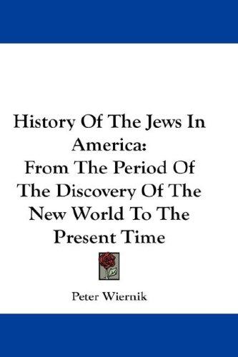 Peter Wiernik was an influential Yiddish journalist in Chicago after immigrating from Vilna when he was twenty. He also wrote in Hebrew and English. In this great work he traces the history of the Jewish people in the Americas from the earliest days of exploration to the beginning of the twentieth century. This book is divided into seven parts: I. The Spanish and Portuguese Period, II. The Dutch and English Colonial Period, III. The Revolution and the Period of Expansion, IV. The Second or German Period of Immigration, V. The Civil War and the Formative Period, VI. The Third or Russian Period of Immigration, VII. The Twentieth Century - Present Conditions. - Summary by Larry Wilson