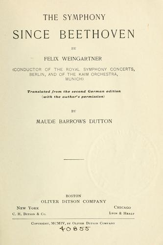 This 1904 book by composer, conductor and pianist Felix Weingartner examines the development of the symphony as a musical form since one of its greatest practitioners, Ludwig van Beethoven. Beethoven's symphonic works gave the symphony an unprecedented importance as an art form and inspired his contemporaries and later composers to take it more seriously. Weingartner helped create a widespread appreciation for Beethoven's symphonies through his writings on, and performances of, these works. He conducted all of Beethoven's symphonies, and was the first conductor to make commercial recordings of all nine of them.