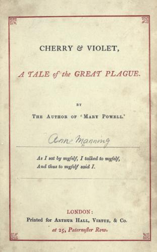 A Tale of the Great Plague. 1666 was a difficult year in London. With its sordid materialism and its coarse handling of things most sacred, not merely does Manning see, as an Englishwoman, the grandeur of its struggles, but she sees its best embodiment in the tragedy of an almost perfect life. In her description of the plague (much detail taken from the diarist, Pepys), followed by The Great Fire, Manning is taken out of her comfort zone to the sordid realities. Her answer is to take Mistress Cherry to a country house in Berkshire, where peace and tranquility are to be found. - Summary by Lynne Thompson