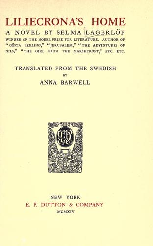 Liliecrona's Home was published in Sweden 1911, translated into English by Anna Harwell and published in London in 1913. The story is set in the same surroundings in the district of Värmland which Lagerlöf knew so well and used in many of her books.