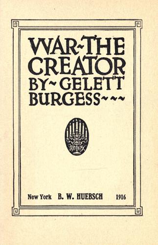 Gelett Burgess, an American writer, penned this gripping account of the profound change that war caused in a young Frenchman he knew. “Because he was my friend, because he was so lovable, because he suffered much, I want to try to tell the story of a boy who, in two months, became a man. I happened to see him first just before the war began, and not again until after he had been wounded; and the change in him was then so great that I could not rest until I had learned how it had been brought about.” – From War the Creator (Lee Smalley)