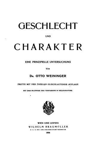 Geschlecht und Charakter Eine prinzipielle Untersuchung | Free ebook | Digitalbook.io