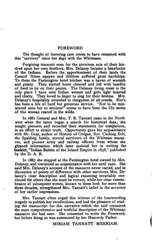 A Survivor's Recollections of the Whitman Massacre